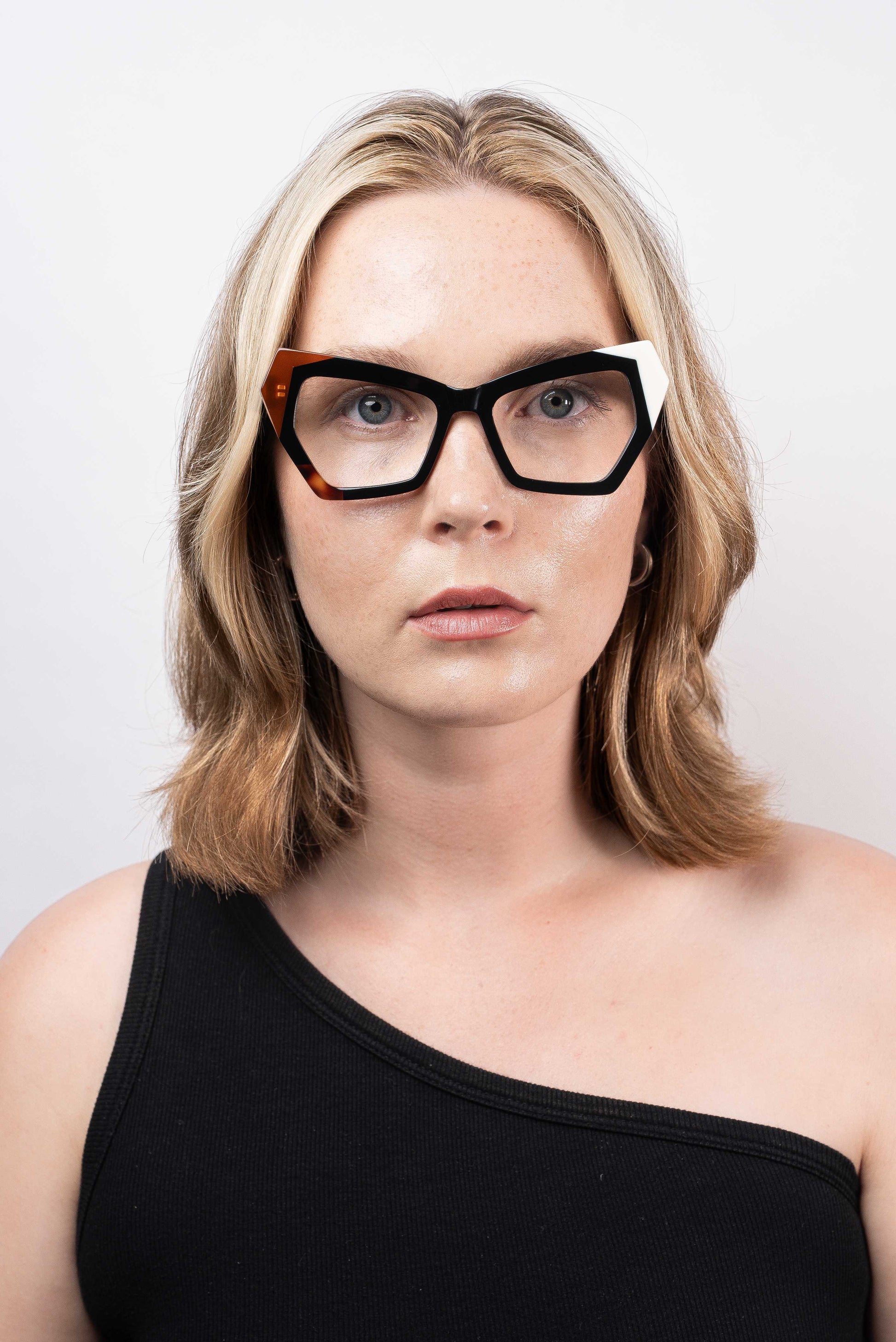 Il modello Leila è una montatura in 100% acetato con un design audace e multicolore