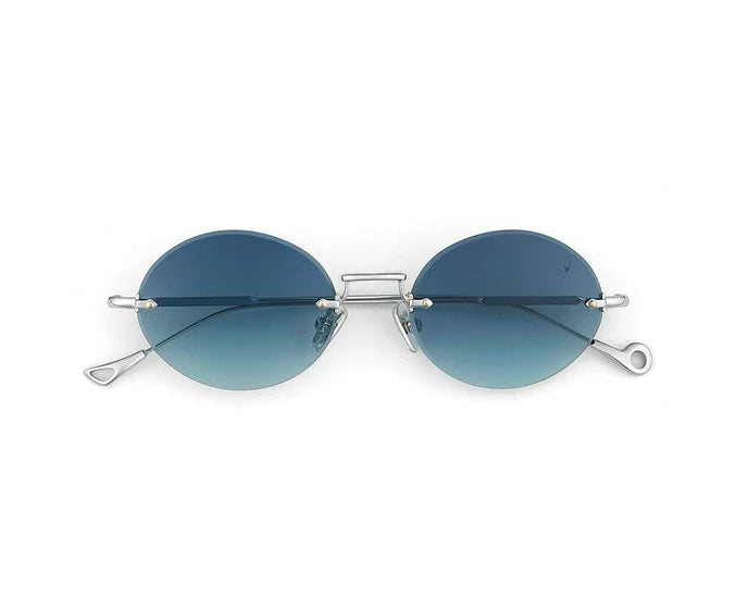 - Hanno lenti rotonde senza montatura (rimless) e una struttura metallica color argento.