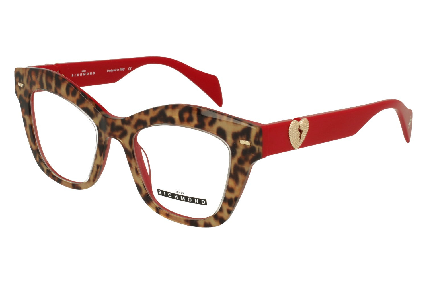 Questi occhiali da vista John Richmond modello RIV.232.00, si distinguono per il loro design audace e la combinazione di colori vivaci. La montatura cat-eye, con un'anima seducente e retrò, è arricchita da un motivo maculato. Le aste, realizzate in un intenso colore rosso, sono decorate con l'iconico logo a cuore spezzato color oro, simbolo distintivo del brand. Questa montatura è un accessorio che unisce passione e stile, perfetto per chi desidera esprimere una personalità decisa