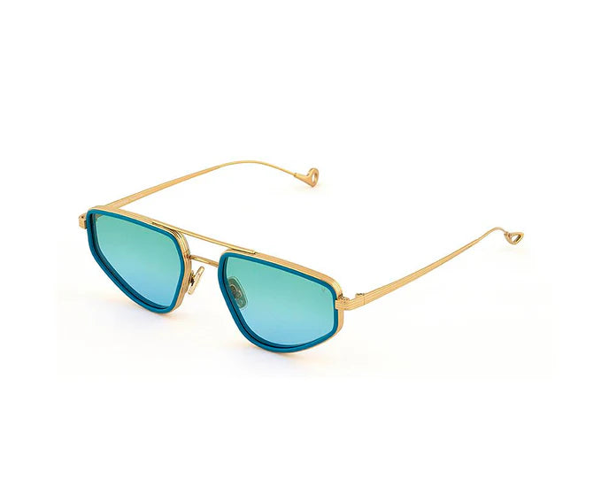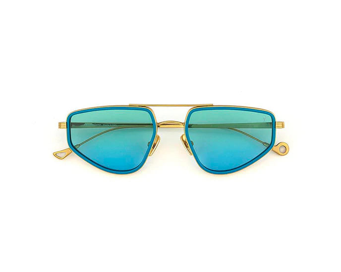 - Design e stile: Il modello Silencio C.T-4-43 ha una montatura dorata con lenti blu sfumate, che unisce un design retrò a un tocco contemporaneo. La montatura è descritta come irregolare e l'occhiale come un accessorio distintivo.